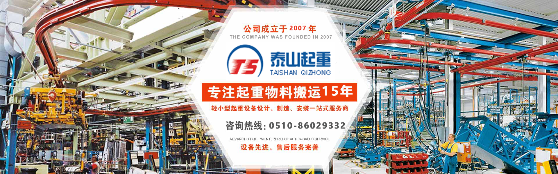 江陰市泰山起重設(shè)備有限公司座落在富庶的現(xiàn)代化港口城市——江陰市南閘鎮(zhèn)工業(yè)園區(qū),緊靠錫澄高速,錫澄路,北依江陰港區(qū),貫通滬寧高速的世界第四、中國第一的江陰長江大橋,穿越而過,飛架南北,高速至上海虹橋機(jī)場僅2小時(shí),南又緊靠正在建設(shè)中的無錫國際機(jī)場,交通便捷,環(huán)境優(yōu)美。  本公司專業(yè)為壁行式懸臂起重機(jī)、KBK軌道,鋼絲繩電動(dòng)葫蘆、環(huán)鏈葫蘆、KBK組件,梁式起重機(jī)、電動(dòng)旋臂起重機(jī)等配套起重機(jī)械配件,主要產(chǎn)品有:KBK軌道,梁吊掛裝置、環(huán)鏈葫蘆,KBK組件,手動(dòng)式小車、行車走輪、電纜滑車等起重機(jī)配件,同時(shí)可提供起重設(shè)備的安裝、維修、為客戶提供全方位的技術(shù)咨詢等各項(xiàng)服務(wù)?! 」镜墓芾韺ⅰ耙匀藶楸尽弊鳛樽凇ぁぁ?..